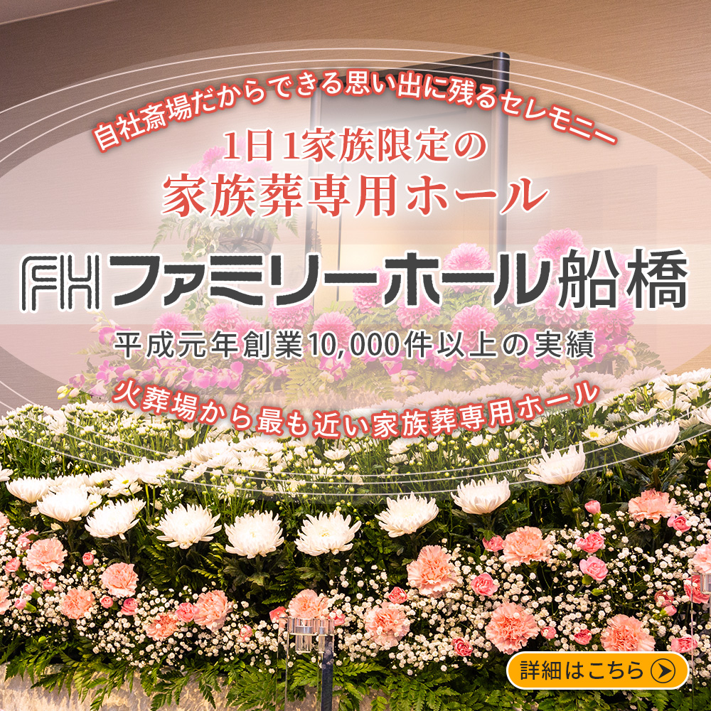 当斎場は千葉県船橋市にて地域密着で細やかなサポートにこだわったご葬儀・お別れ式を行う葬儀社・ファミリーホール船橋です。