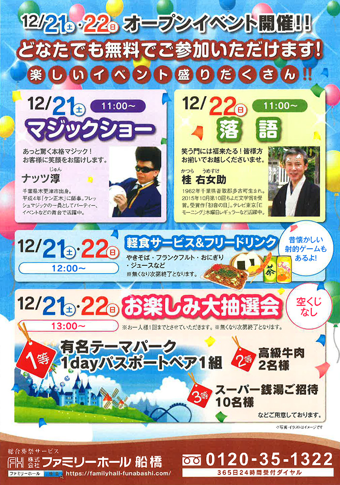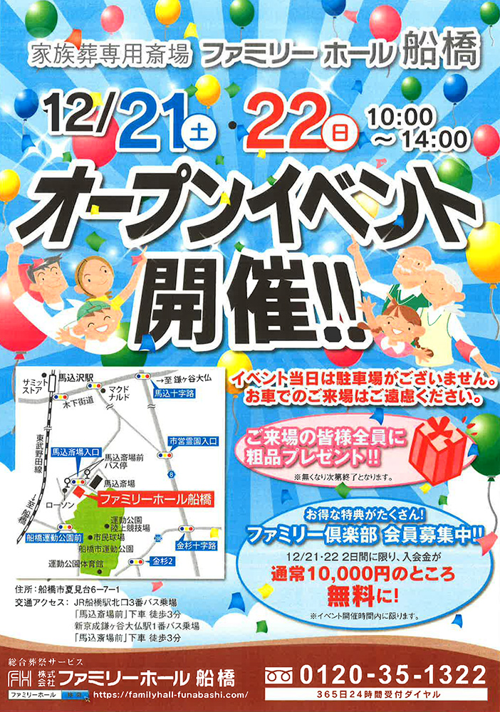 詳細は、『ファミリーホール船橋』のホームページをご覧ください。