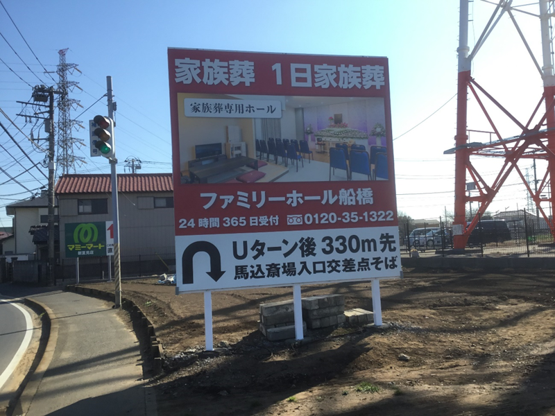 しかし、まだまだ周知していかねばという事で野立て看板を船橋運動公園前の道路に設置いたしました。
