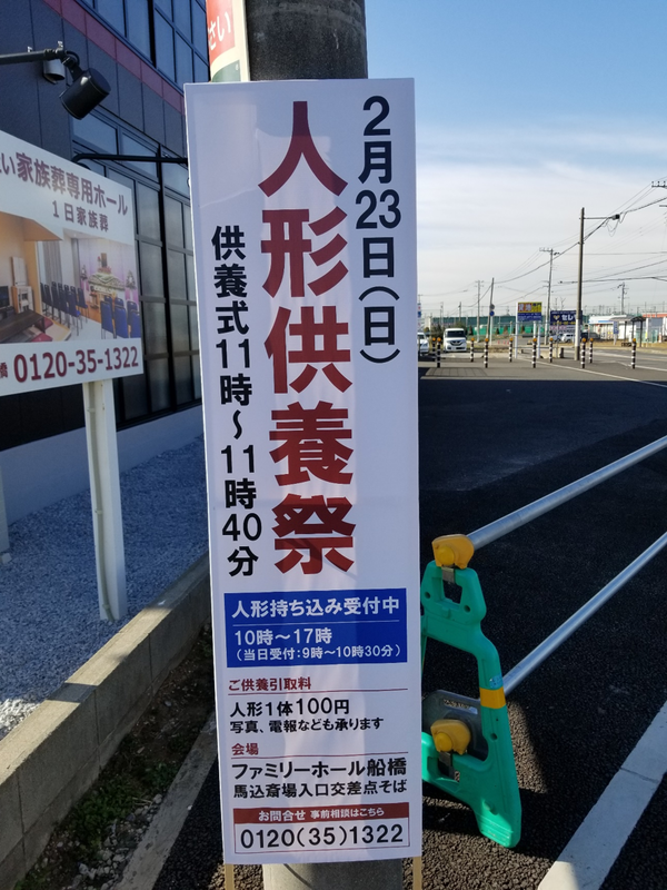 人形供養祭のチラシポスティングと同時に立て看板を各所に設置しご案内。