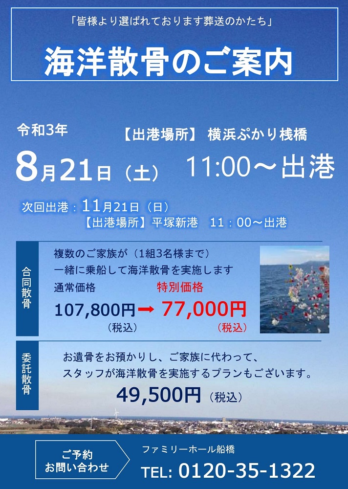 合同散骨は複数のご家族が乗船しご家族が行う散骨。